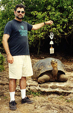 Brad Cross delivers a Friendship Bell from Harmony Hollow to a local spokesperson in the breathtaking Galapagos Islands.