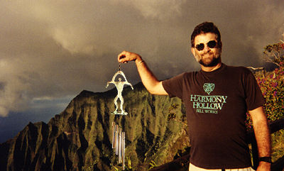 On the enchanting Island of Kauai, Brad shares the resonant spirit of Hawaii with the mesmerizing Hawaiian Petroglyph chime, adorned with the Rainbow Man Motif – a harmonious connection between culture and nature.